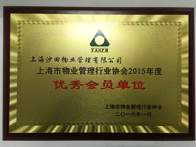 我司榮獲“2015年度上海市物業(yè)行業(yè)協(xié)會優(yōu)秀會員單位”稱號