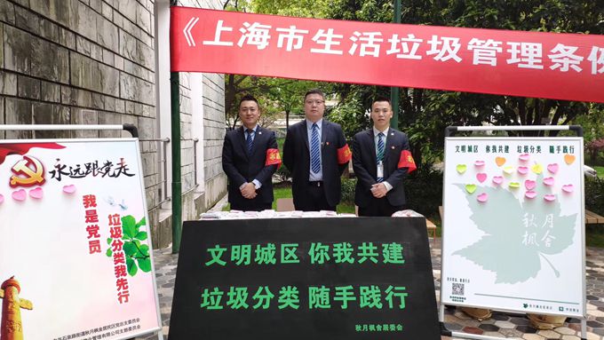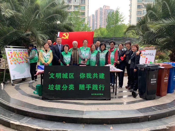 2019年4月14日,沙田物業(yè)黨支部與秋月楓舍居民區(qū)黨總支聯(lián)合開展“文明城區(qū),你我共建,垃圾分類,隨手踐行”,“我是黨員,垃圾分類我先行”宣傳活動(dòng)。