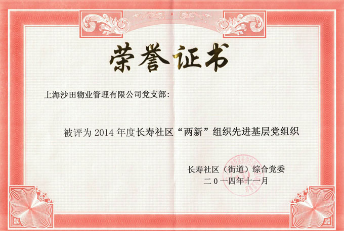 被評(píng)為2014年長壽社區(qū)兩新組織先進(jìn)基層黨組織